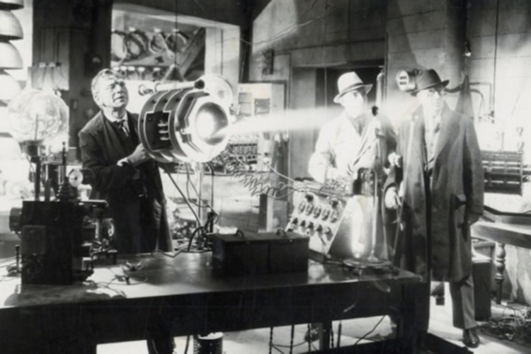 Nhà khoa học Harry Grindell Matthews “biểu diễn” tia tử thần trong phòng thí nghiệm của ông.Nhà khoa học Harry Grindell Matthews “biểu diễn” tia tử thần trong phòng thí nghiệm của ông.