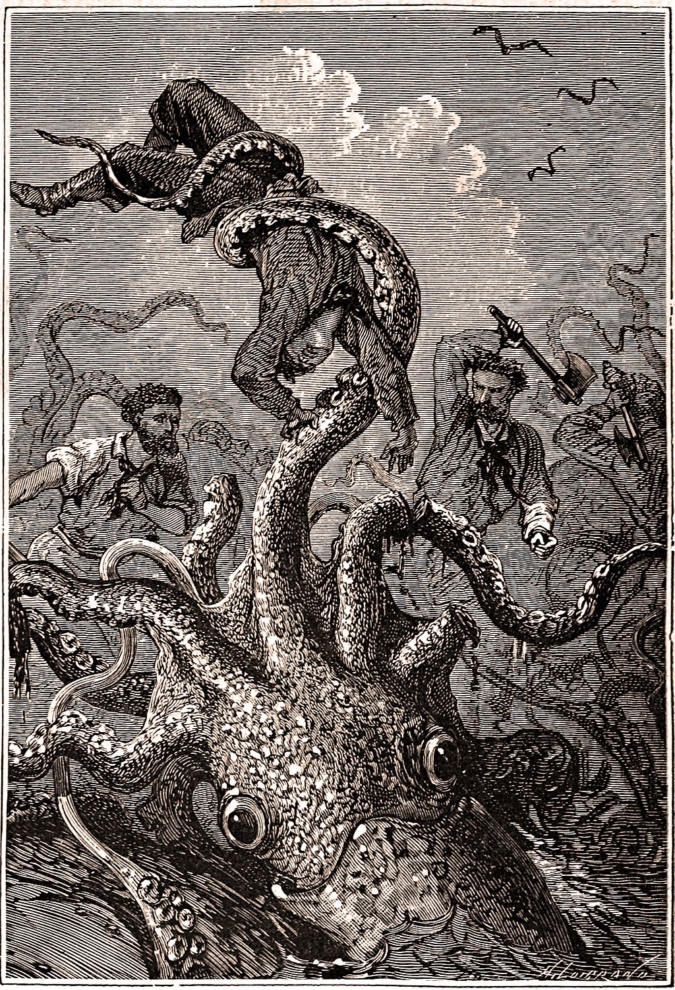 Một ví dụ khác về một loài sinh vật biển có thực bị phù phép thành thủy quái là huyền thoại về Kraken. Kraken khổng lồ dài đến một dặm trong thần thoại Bắc Âu. Nó được miêu tả là quái thú thường hay tấn công tàu bè và có thân hình lớn đến nỗi nó có thể bị nhầm lẫn với một hòn đảo. Kraken xuất hiện lần đầu tiên trong một truyền thuyết của người Iceland vào thế kỷ thứ 13.