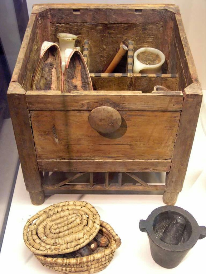 Một số hộp gỗ đựng mỹ phẩm chạm khắc tinh tế của người xưa được các nhà khảo cổ học tìm thấy. Ảnh: reneeyancy, akgimage.