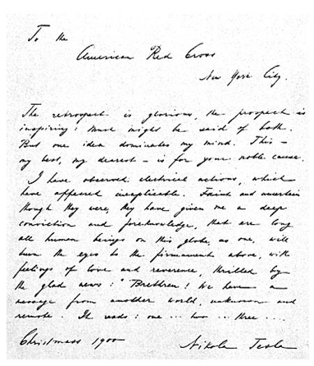 Khi được Hội Chữ thập đỏ hỏi về tiên đoán của mình cho những thành tựu vĩ đại nhất mà con người có thể đạt tới trong thế kỷ tiếp theo, ông trả lời bằng một bức thư: