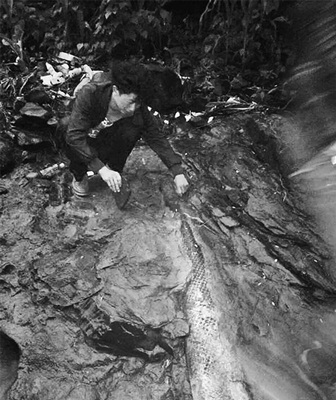 Các nhà khoa học đến nghiên cứu hiện trường dấu vết hóa thạch rồng đen. Ảnh: Internet.