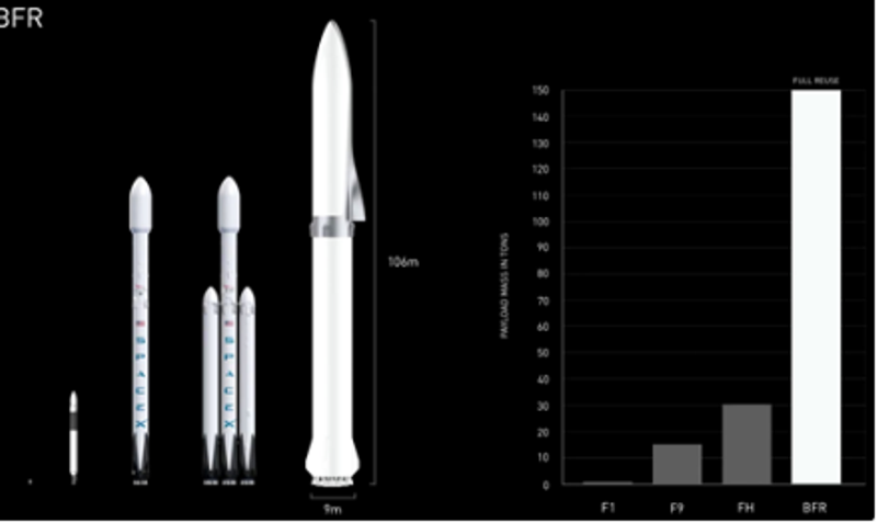Hiện, nhà tỉ phú tuyên bố đã nghĩ ra cách: “cho ra rìa” tất cả các sản phẩm khác của hãng, bao gồm hai tên lửa đẩy Falcon 9 và Falcon Heavy, cùng tàu vũ trụ Dragon, để tập trung nguồn lực và tài nguyên cho con tàu mới BRF này. BRF thực chất là tàu vũ trụ tích hợp tên lửa đẩy, có thể tái sử dụng nhiều lần.