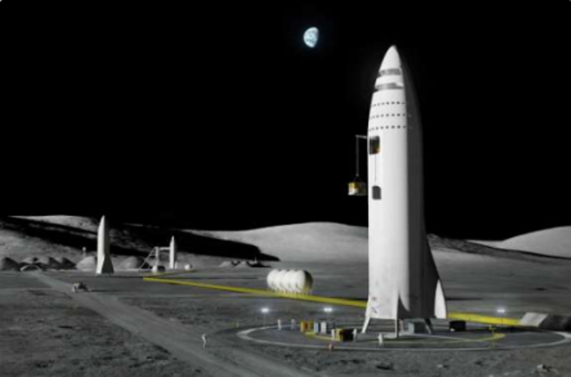 Ảnh mô phỏng tàu BFR tại căn cứ Moon Base Alpha trên Mặt Trăng. Ảnh: SpaceX