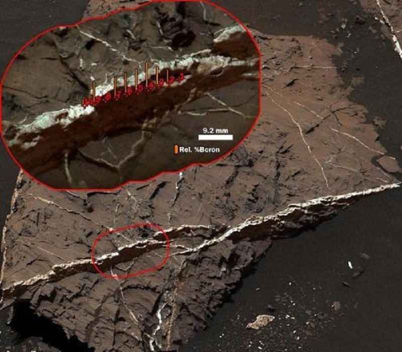 Mạch khoáng chất Catabola trên sao Hỏa chứa mật độ boron rất lớn – một nguyên liệu cơ bản cho sự sống. (Ảnh: NASA)
