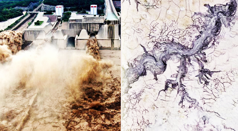 Hồ chứa của đập Tiểu Lãng Để (Xiaolangdi) đã được lệnh xả lũ liên tục kể từ ngày 1/7 để chuẩn bị cho giai đoạn quan trọng trong việc kiểm soát lũ trên lưu vực sông Hoàng Hà. Tuy nhiên, khi mực nước hồ chứa giảm xuống đáng kể, một cảnh quay trên không đã gây chấn động cho người dân.