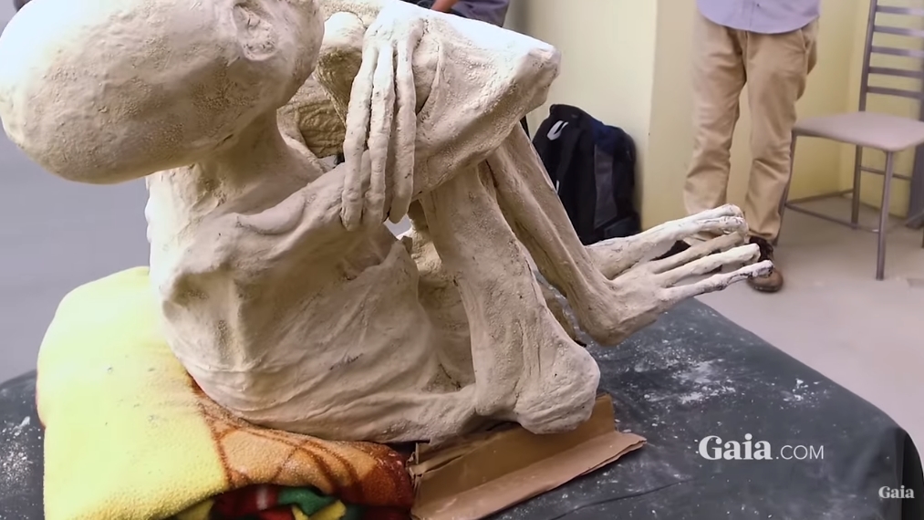 Ông nói thêm rằng những xác ướp cao 70 cm có ba ngón tay và hộp sọ của chúng dài ra ở phía sau đầu. Hốc mũi bị thiếu và vòm lông mày không rõ ràng.